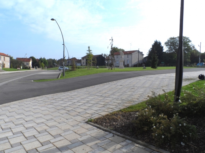 - Déplacement du monument aux Morts (Eloignement des voies de circulation pour la sécurité et le calme lors des cérémonies), réfection et mise en scène (Le monument tient une place centrale de le nouvel aménagement)
