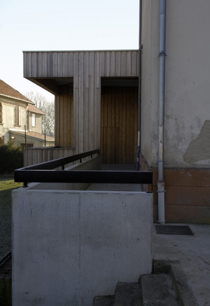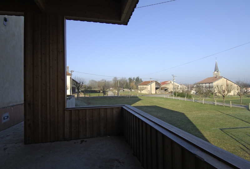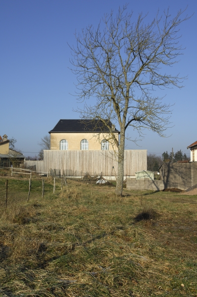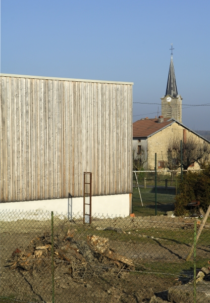 Extension contemporaine de la mairie, la nouvelle salle des fêtes de Mignéville présente une version de la juxtaposition d'un bâtiment élégant du XIXème siècle et d'un volume contemporain qui vient se lover tout contre l'existant.